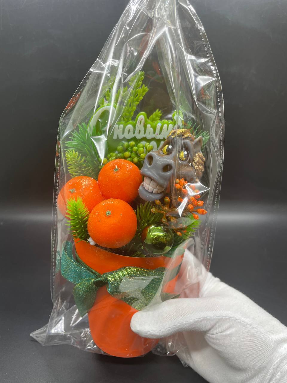 Ароматическое мыло ручной работы Конь и мандарины "С Новым Годом"