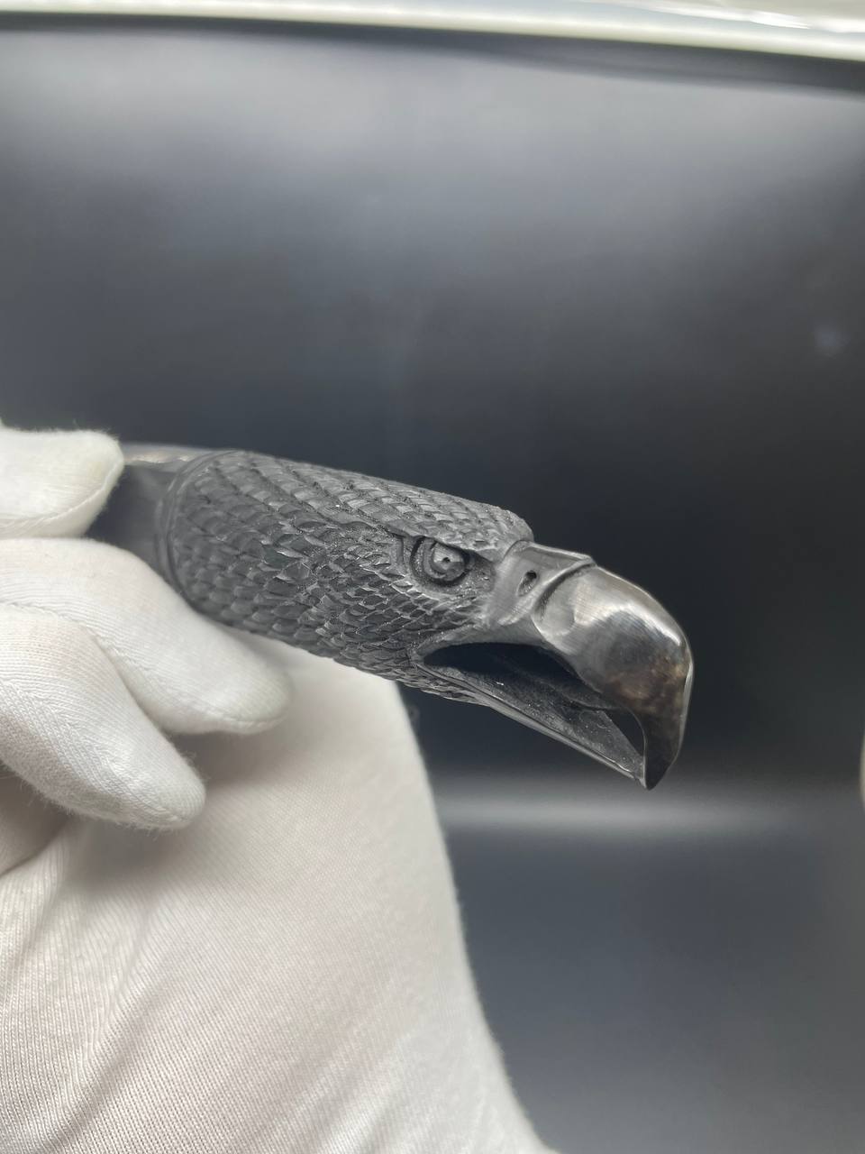 Обсидиановый клинок с рогом африканского буйвола гравировка Орел 29 см
