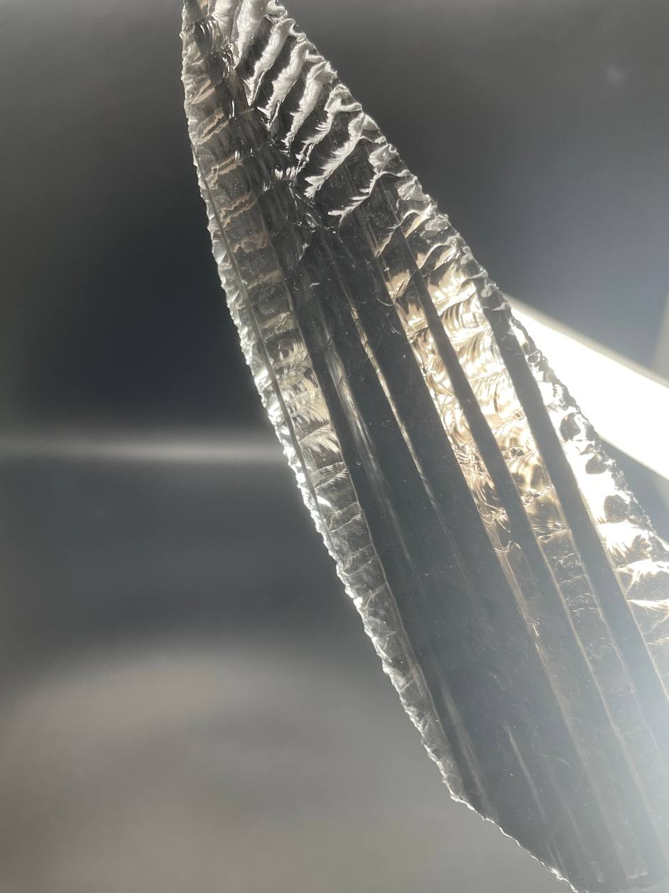 Каждое лезвие — результат точной ювелирной работы. Обработка обсидиана осуществляется вручную методом скалывания, что позволяет добиться острых краёв и придать изделию аутентичный облик древнего артефакта.
