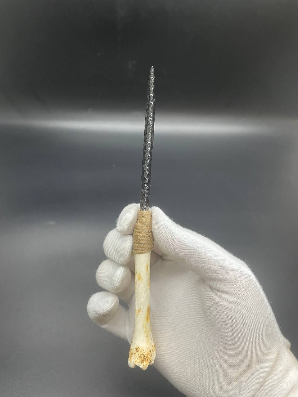 Клинок изготовлен из натурального обсидиана, вулканического стекла, которое издавна использовалось для создания ритуальных и охотничьих предметов. Обсидиан добывается на склонах горы Арагац в Армении — одном из немногих мест на планете, где можно найти этот редкий камень в высоком качестве.