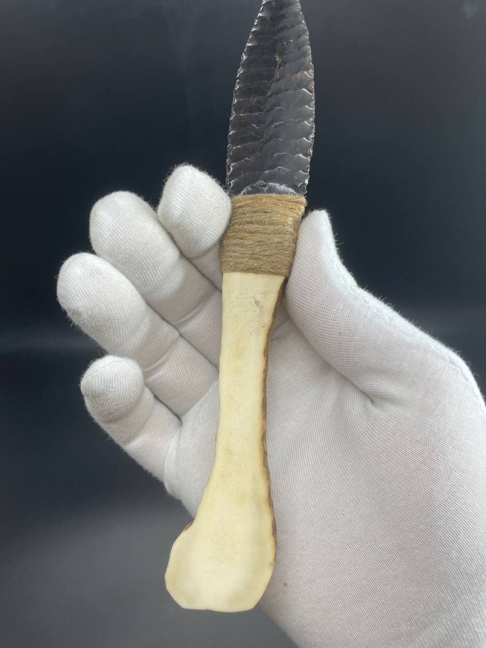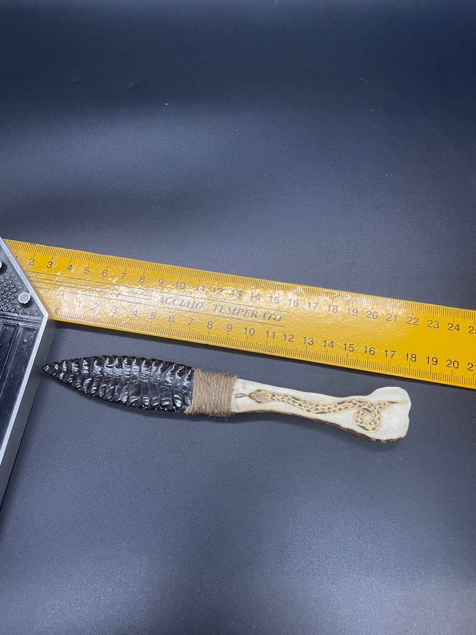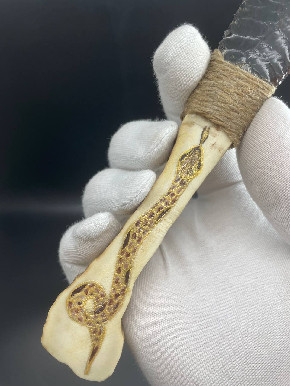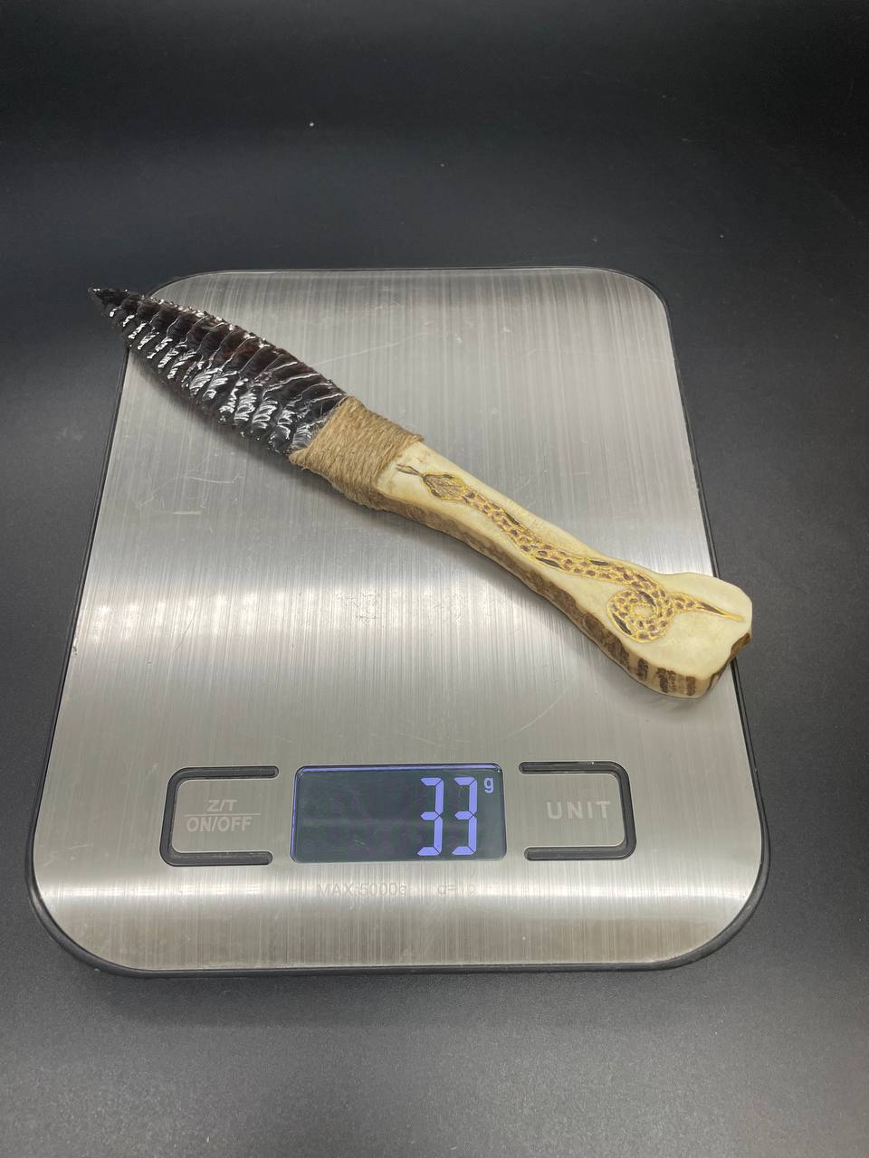 Обсидиановый нож с рукояткой из рога оленя с рисунком змеи 18 см