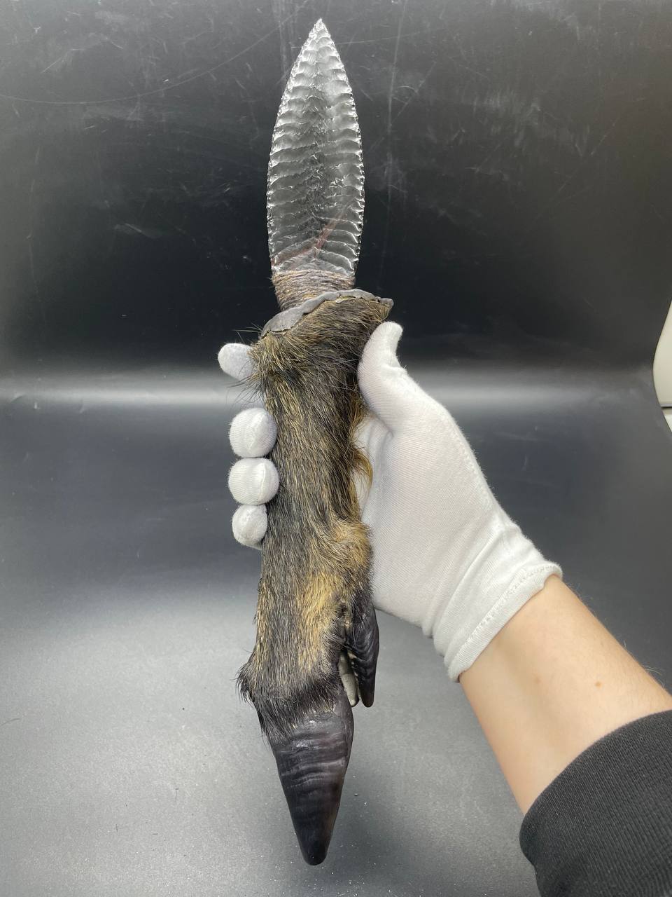 Обсидиановый нож с рукоятью копыта вепря 36 см